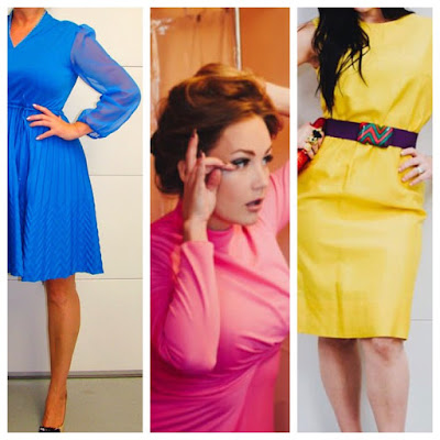 Today's color pallet of blues, pinks and yellows. All looks available via EVOLUTION VINTAGE